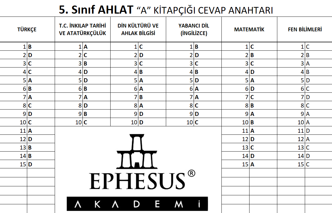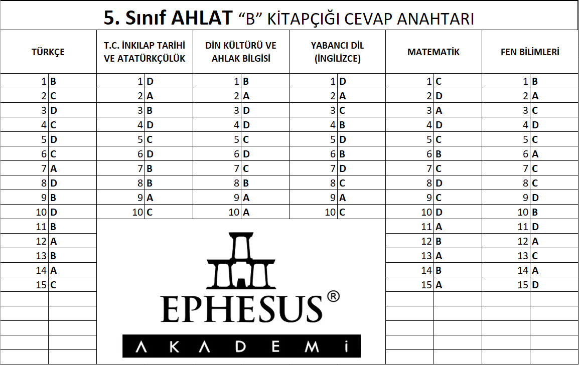 5. SINIF CEVAP ANAHTARI -