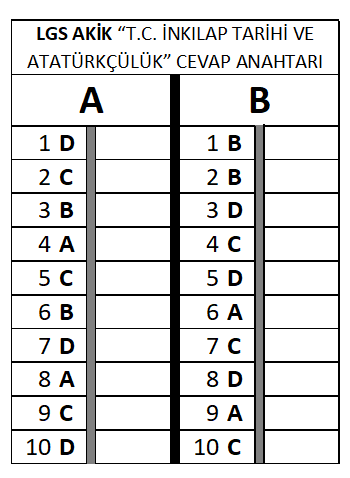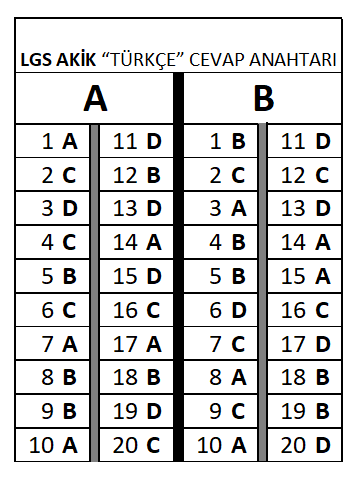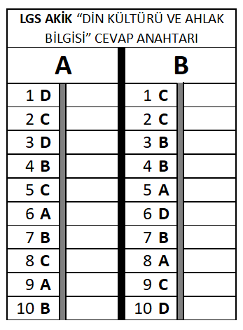 DİJİTAL / CEVAP ANAHTARLARI / LGS / AKİKLGS