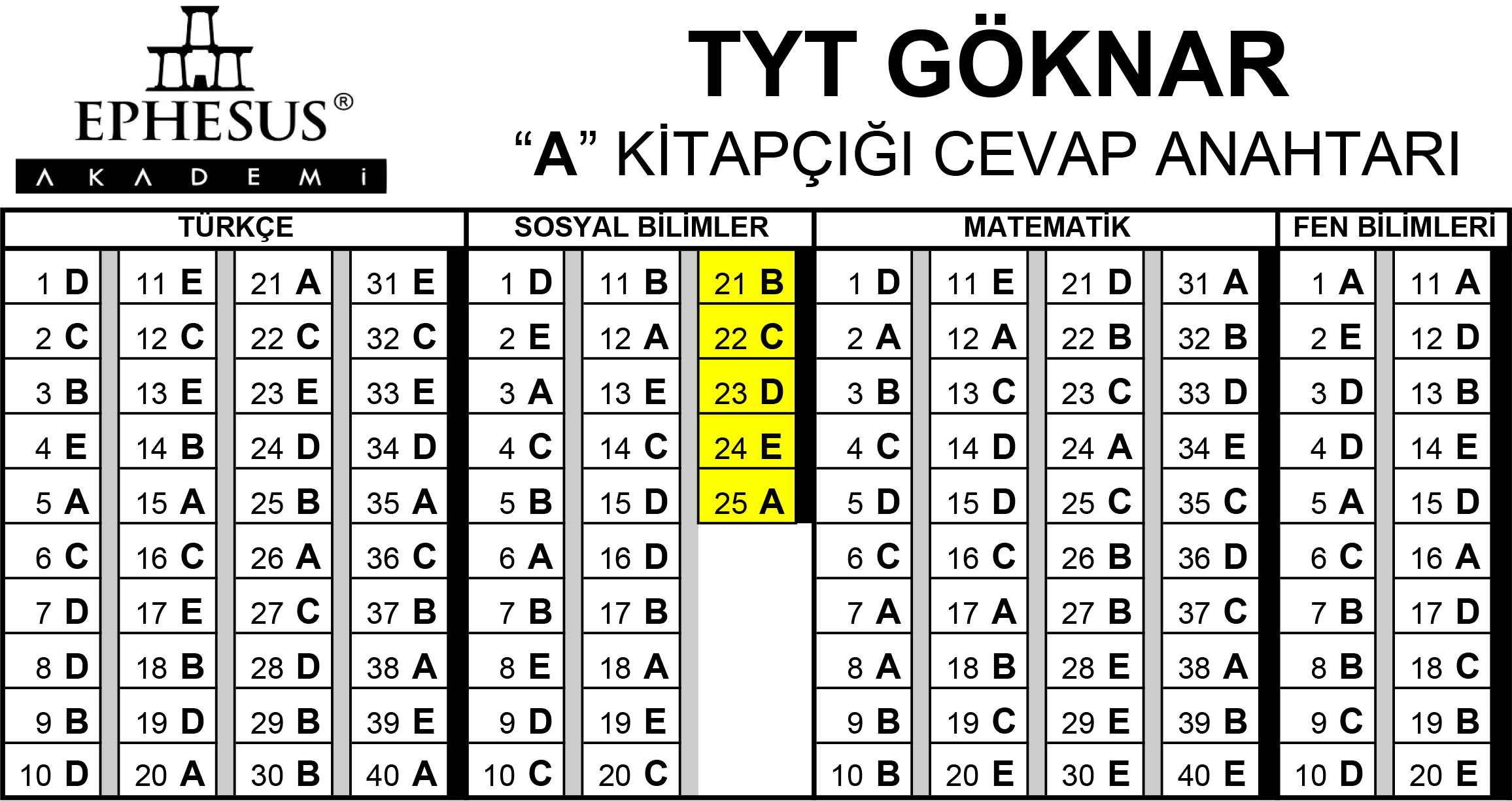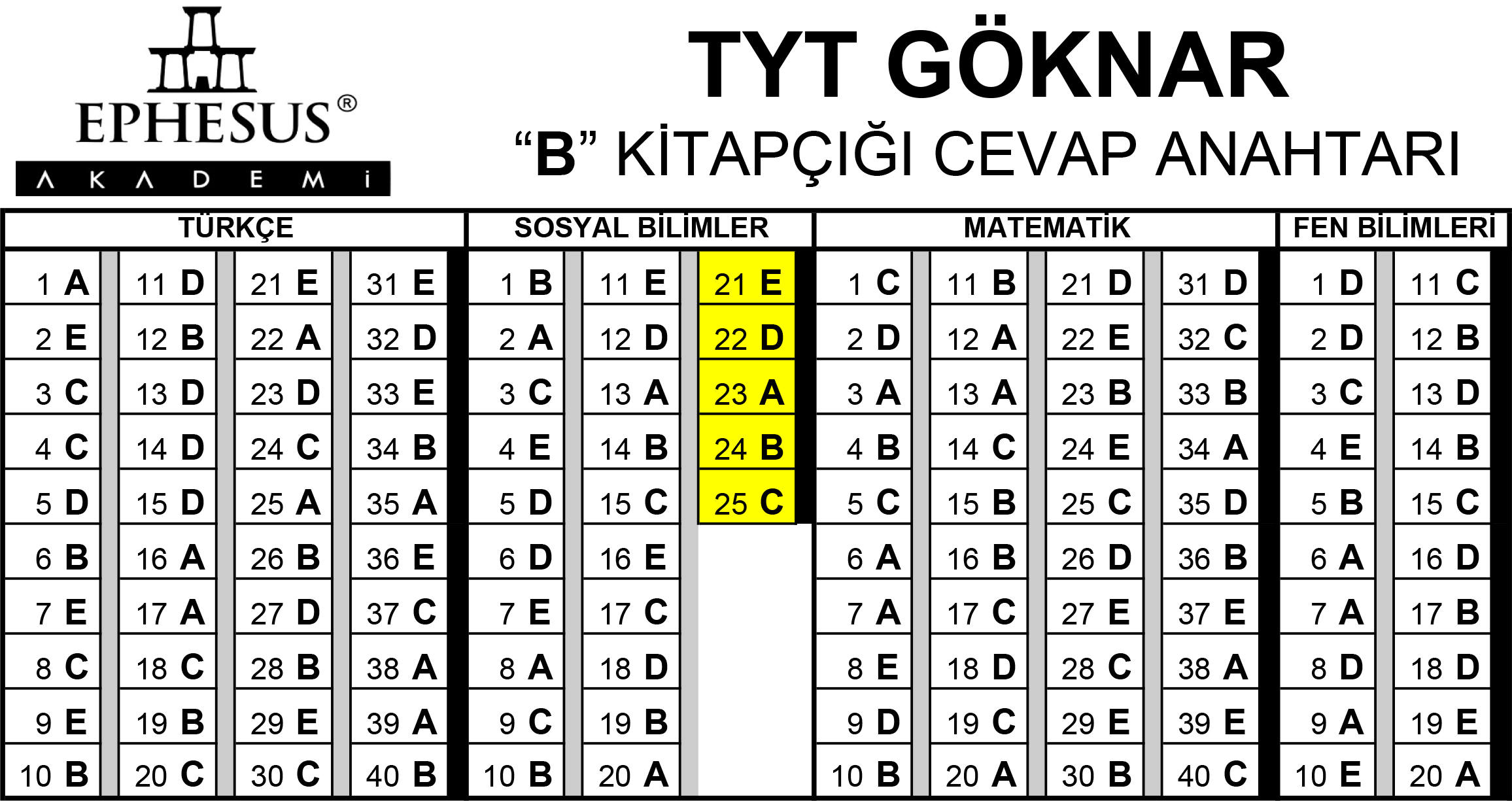 TYT CEVAP ANAHTARI - GÖKNAR